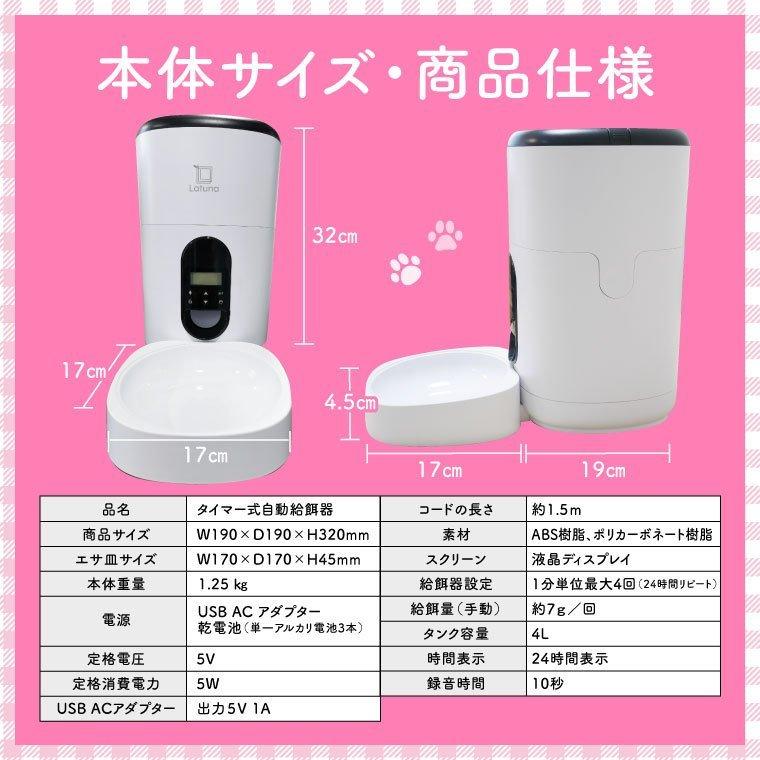 ラチュナ Latuna 自動 給餌機 分解 洗える 清潔 水洗い 新生活 一人暮らし タイマー 機能 付き 餌 エサ ペット 2WAY 給電 タイマー式 録音可 自動 えさやり機 お留守番可能 清潔 便利 アイテム 大容量 ペット 仕事 長期 外出 旅行 不在時 不在 外泊 宿泊 自動 お留守番 おるすばん フィーダー ペットフィーダー グッズ 大型 小型 犬 動物 イヌ ネコ うさぎ 動物 ペレット ドッグ キャット フード