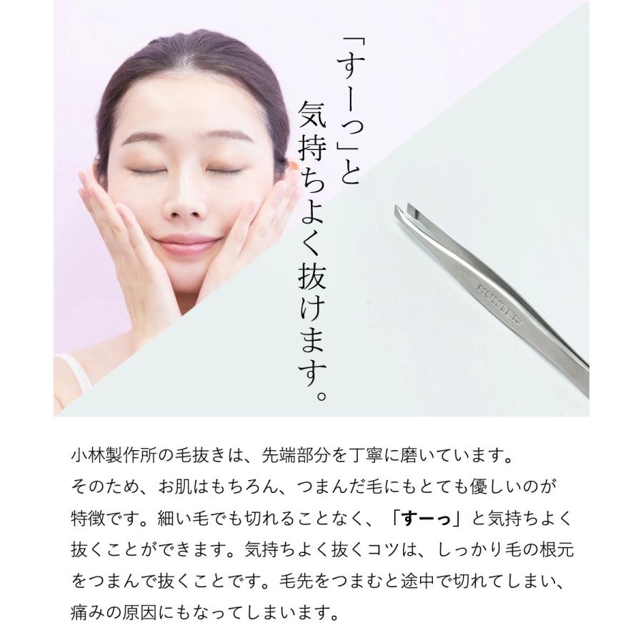 HUNTERは、小林製作所とバースバンクがコラボレーションしたオリジナル毛抜きです。小林製作所は、昭和20年から続く毛抜きやピンセットの製造メーカー。