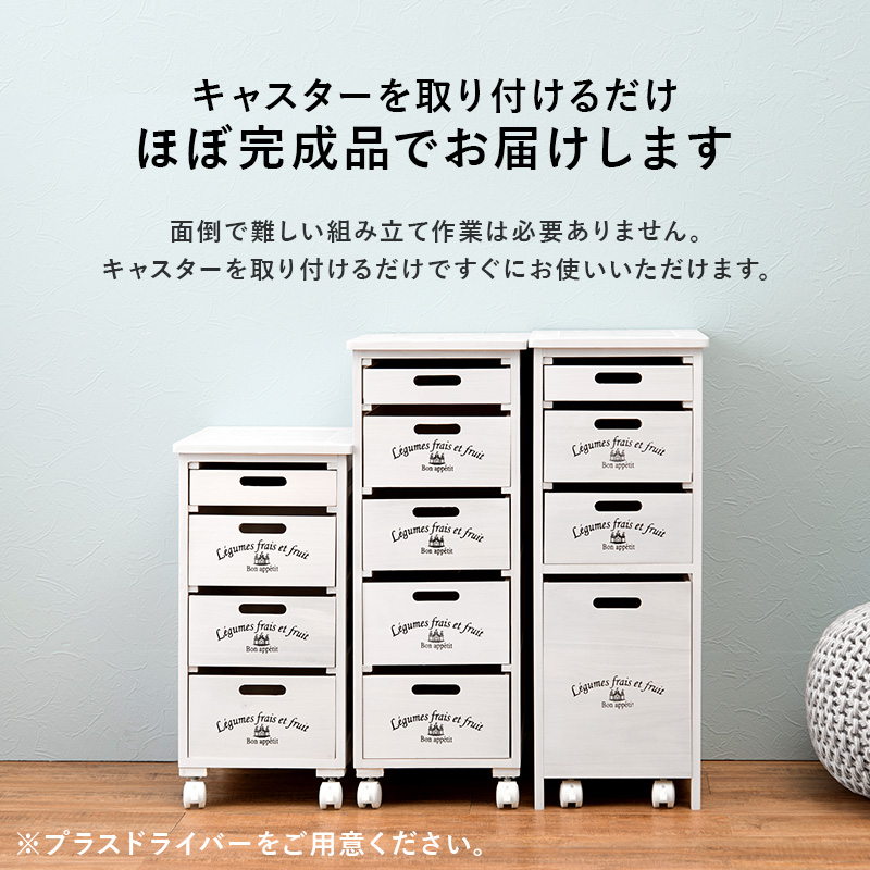 キャスターを取り付けるだけのほぼ完成品なので、設置もらくらく。
