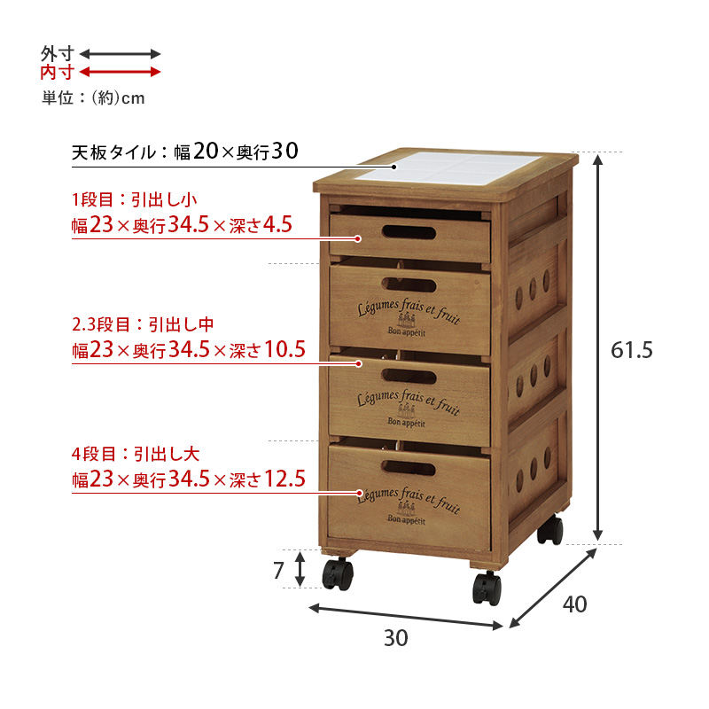 【商品サイズ(約)】幅30×奥行40×高さ61.5cm