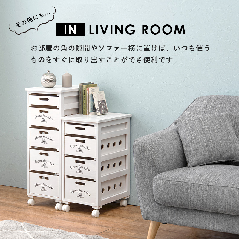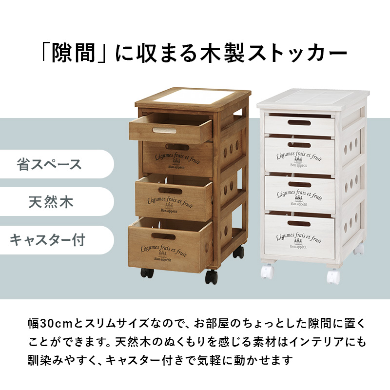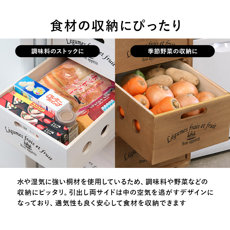 通気性のよい木製ストッカー。野菜やキッチン用品の収納にピッタリ。