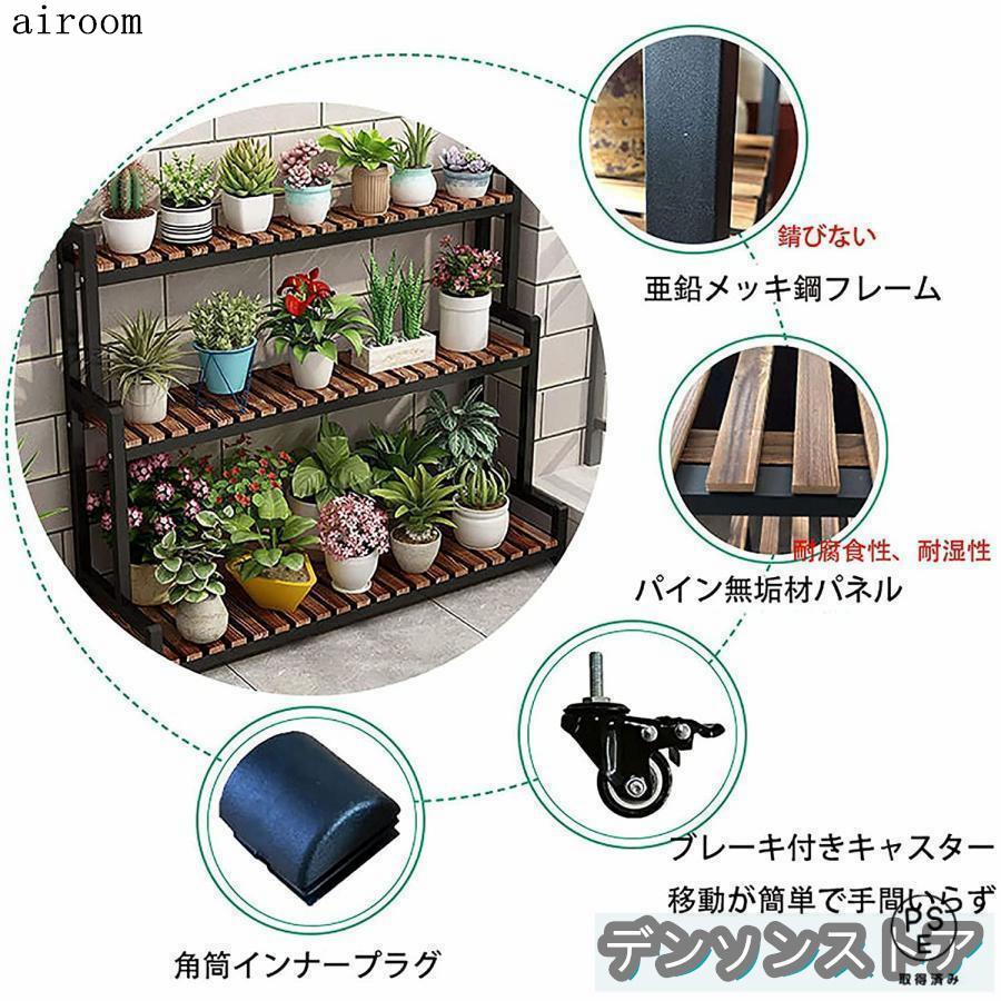 フラワースタンド 観葉植物ラック フラワースタンド 2段 3段 花台、キャスター付き 植物棚 室内 屋外 プランタースタンド、おしゃれ 錆びない 幅80/100/120cm