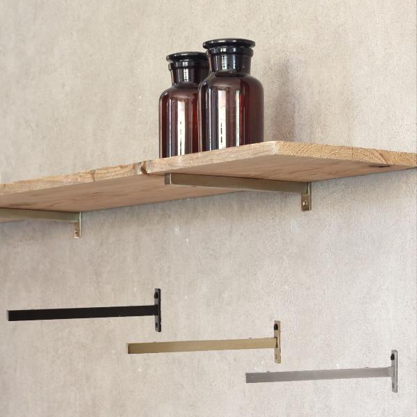 サイズ幅:約1.6cm*奥行:約18cm*高さ:約5cmネジ穴の径(壁用・板用):φ約4mm重さ:約200g材質:アイアン※1本の単位・販売となります。商品説明ややラフな作りとなります。塗装ムラ、錆び、加工跡等が見られます。・定形外郵便:可・クリックポスト:可特徴シンプル おしゃれ 棚受け 棚 DIY ブラケット 棚 リノベーション リフォーム棚受け 金具 金物 アイアン ブラケット おしゃれ L 単品 ブラック ゴールド 黒 金色 インテリア