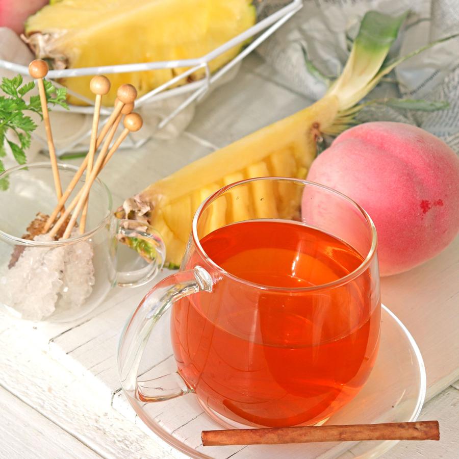 グリーンルイボスティーベースに、フレッシュなパイナップルとピーチの優しい甘さの組み合わせ♪