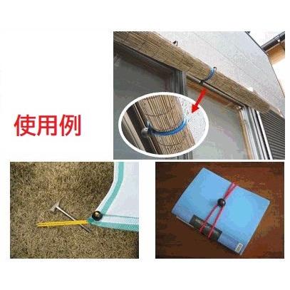 【商品名】ボール止めバンジーコード【入 数】10本【サイズ】5mm×L300mm【最大伸】約L540mm【材 質】コード:天然ゴム・ポリプロピレン ボール:プラスチック【カラー】ブラック【特 長】・ボール型の留め具付きでシートのハトメに引っ掛ければ簡単にシート張りが可能です・ロール状の物やファイルを束ねるのにも非常に便利です・長さ調節が可能です