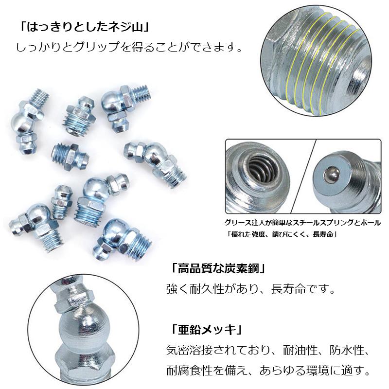 1.110個のグリースニップルは亜鉛メッキ鋼製で、耐腐食性があり、高強度、安定性、長寿命、そして環境に優しいです。小型で持ち運びやすいデザインなので、ツールボックスに入れておくと、より便利で迅速に作業ができるようになります。