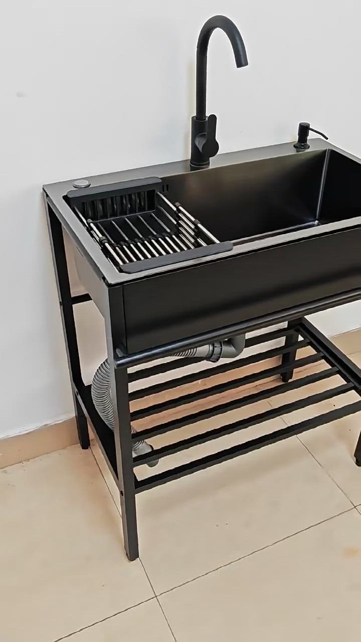 特殊設計:クラシックなR角度設計により、容量が増加し、衝突を回避できます。結露防止コーティングにより水中騒音をなくし、長寿命化を実現。野菜と果物を簡単に洗浄できる実用的な作業フレームです。シンクの下に収納台があり、工具を置くのに便利です