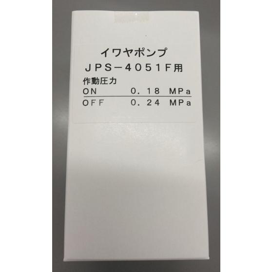 岩谷電機製作所(イワヤポンプ)深井戸用ポンプ JPS-4051F (JPS 4051F)用の圧力スイッチです。JPS-4051F-50、JPS-4051F-60、JPS-405F-50(旧品番)、JPS-405F-60(旧品番)でご使用いただけます。メーカー純正の修理用部品です。対応品以外でのご使用は保証できませんので、予め井戸ポンプの型式をご確認下さい。旧型番の圧力スイッチは井戸ポンプ型番を添えてお問合せ下さい。※圧力スイッチに記載の型番では部品特定できません。