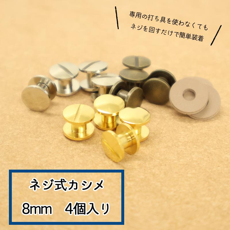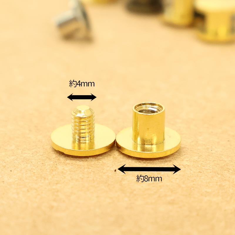 ◆ネジ式カシメ8mm・4個入(4151-1)【メール便20個まで】|ネジ式カシメ,ネジ,カシメ,組ネジ,金具,レザークラフト,真ちゅう,ハンドメイド,かしめ,メタルパーツ