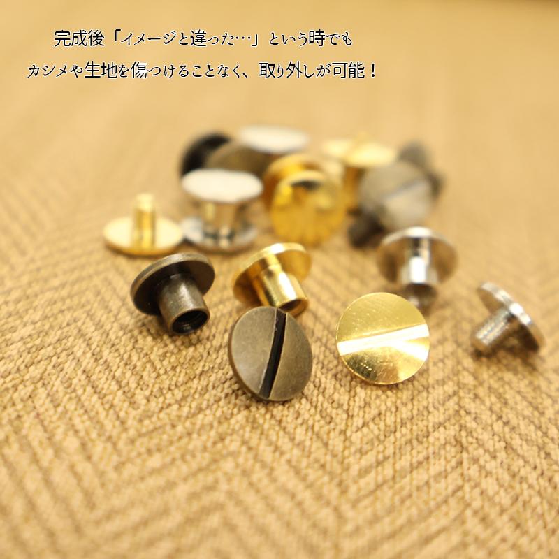 |ネジ式カシメ,ネジ,カシメ,組ネジ,金具,レザークラフト,真ちゅう,ハンドメイド,かしめ,メタルパーツ