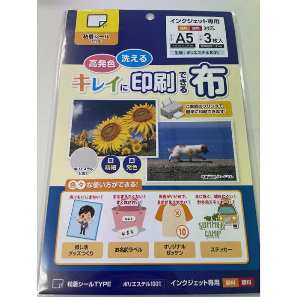 キレイに印刷できる布 A5 3枚入り (粘着シールタイプ) ks-kn-03