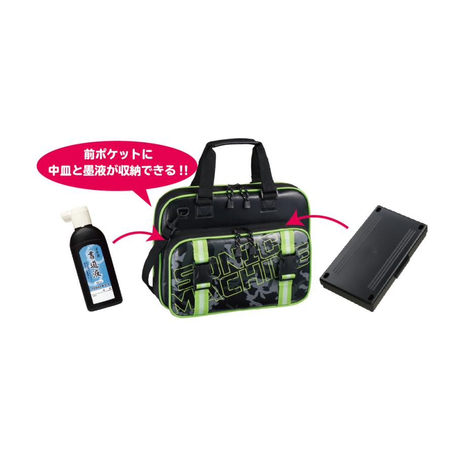 書道セット 小学生用、子供に人気の習字道具をいれる書道バッグと墨、すずり、筆、文ちんなど一式にしたおしゃれな書道セットです。小学校の授業で使えます。製品名 【書道セット ソニックマシーン 】小学生男の子用メーカー ヒシエス誠文社外寸法 約340×90×H250mm(持ち手含まず)