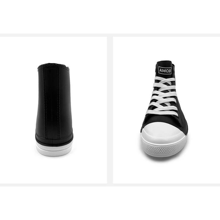 アイテム:レインブーツ性別:メンズ レディースサイズ:通常サイズ仕上げ、幅広や甲が高い方に、アップサイズにおススメです。★天然な特製ゴムで仕上げ、靴紐に下から3番目までの部分はベロと一体成形でおり、約3cmまで水の侵入にくい仕様。★インソールは取り外せるタイプなので、濡れてた時にもカンタンに取り外れます。★内側では肌に優しくフラフラ生地を採用し、素肌でも足通りなめらかで履きやすい。★雨の日の外出だけでなく、日常履きとしての使用も、汚れを気にせず履けるので様々な場面で活躍します。