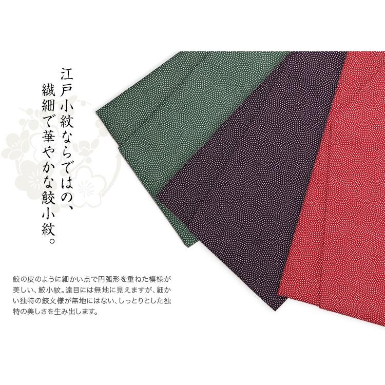 鮫の皮のように細かい点で円弧形を重ねた模様が美しい鮫小紋です。