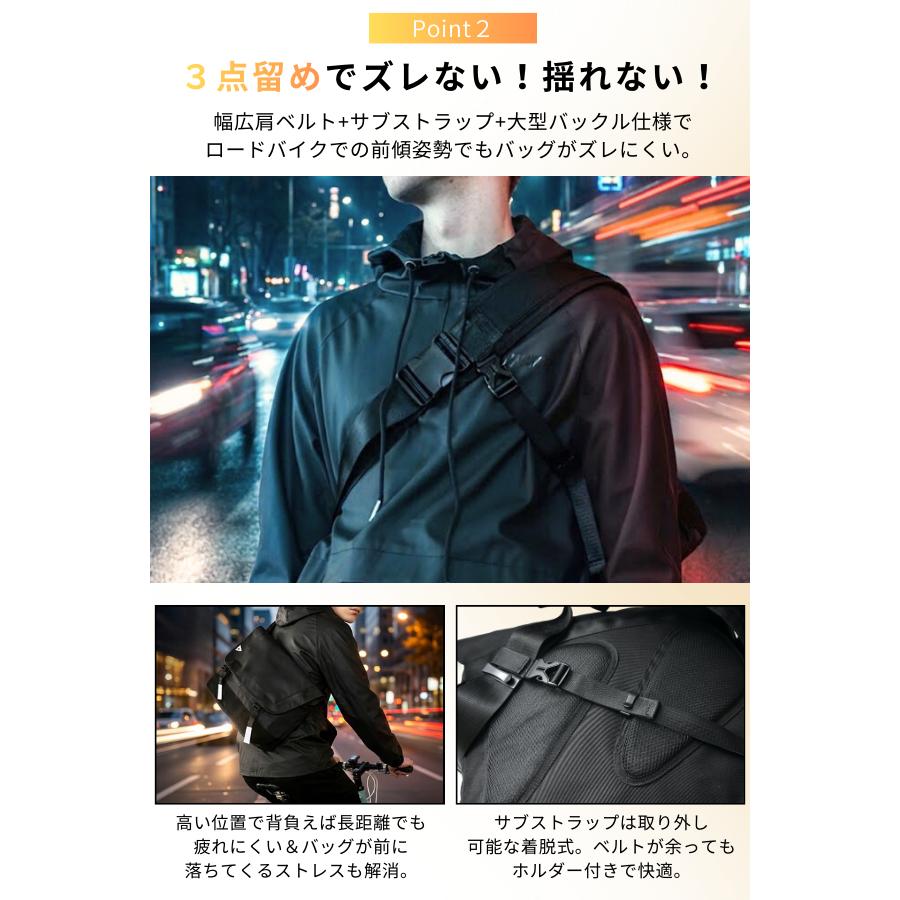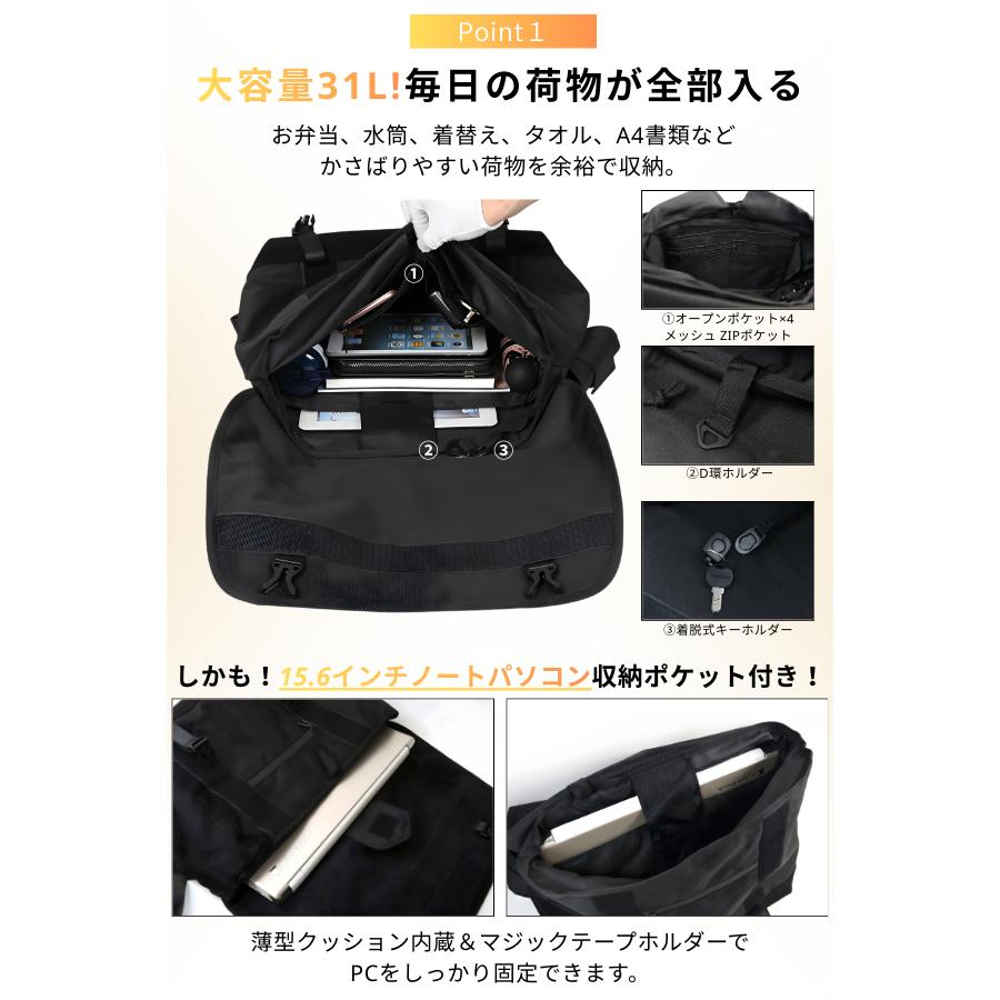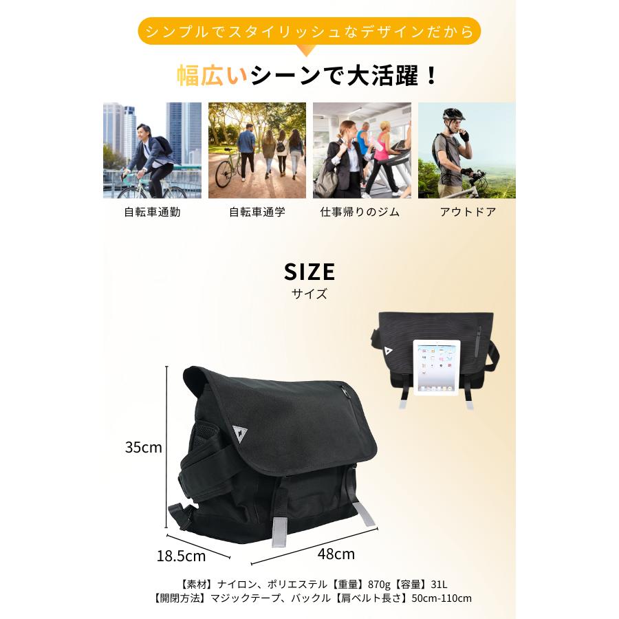 【関連ワード】 メッセンジャーバッグ メッセンジャー バッグ 大容量 31L 自転車 通勤 通学 pcバッグ 15.6インチ ノートパソコン pc収納 メンズ レディース 防水 防滴 止水ファスナー 多収納 3点留め サブストラップ ズレない ショルダーバッグ バイク ロードバイク クロスバイク 自転車バッグ 黒 ブラック 斜めがけバッグ ビジネスバッグ カジュアルバッグ 背面メッシュ
