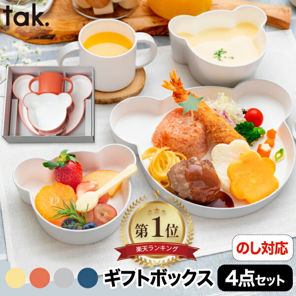 【楽天1位】 tak ベビー食器セット キッズディッシュ 4点セット おしゃれ 日本製 ベア 出産祝い ギフトボックス入り 子ども用食器セット お食い初め 電子レンジ 食洗機対応 キッズプレート ボウル マグ お皿 割れない かわいい クマ型 ベビー 赤ちゃん プレゼント 新生活