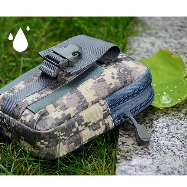 モバイルバッテリーを入れたり、お財布や貴重品、車のキーなどたくさん入ります♪お使いのベルトを通して腰の部分に装着し、丈夫な構造で簡単に外れることはありません。ポーチの素材に撥水性加工を施してあるので、雨や汗などのアクシデントから中身のスマホなどを完全ガードします☆迷彩柄など10つのデザインからお選びいただけます。旅行、サバイバルゲーム、フィッシング、ハイキング、登山などで活躍!