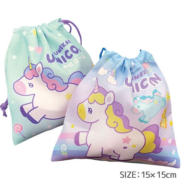 【商品詳細】かわいいユニコーンの巾着です!持ち運びにちょうどいいサイズ♪