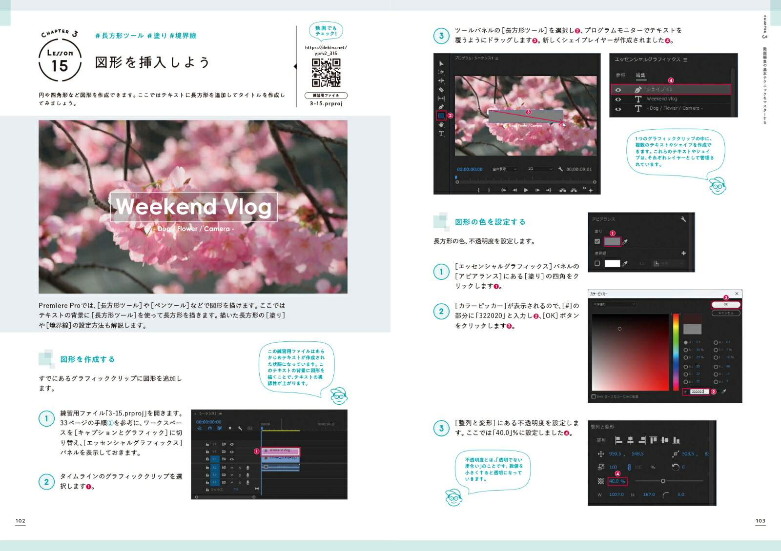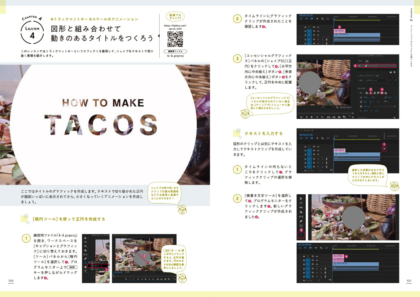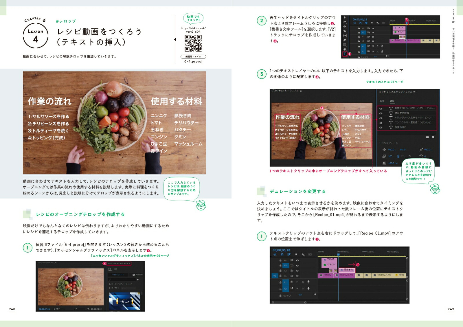 1 Premiere Proを始めよう/2 Premiere Proの基本操作を覚える/3 動画編集の基本テクニックをマスターする/4 アニメーションやエフェクトを使いこなす/5 クオリティをアップする!こだわり演出手法/6 プロの現場を体験!動画制作テクニック/MORE ステップアップに役立つ知識