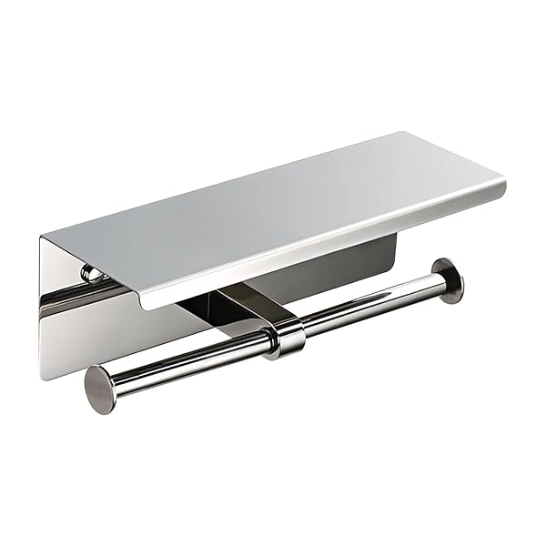 WXVOVXW トイレットペーパーホルダー 2連 トイレっとペーパーホルダー ペーパーホルダー トイレ 棚付き2枚紙巻き スマホや小物などが置ける棚板付き 太巻き 芯なし 対応 簡単設置 工事不要 マンション 戸建て 賃貸 インテリア DIY ステン