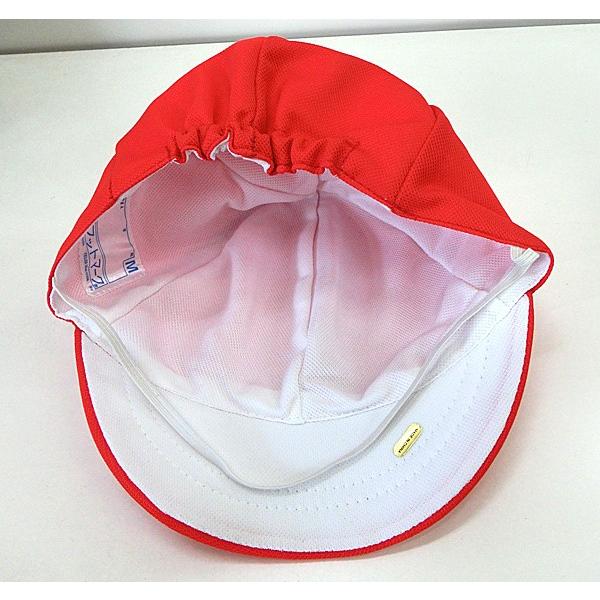 子どもの安全に配慮したソフトなツバの男女兼用の紅白帽子です。