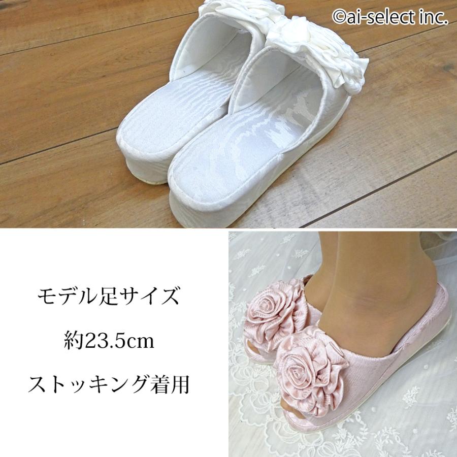 ■上品な模様のモアレ生地を全体に使用した、大きな薔薇が特徴の約4cmヒールルームシューズです。