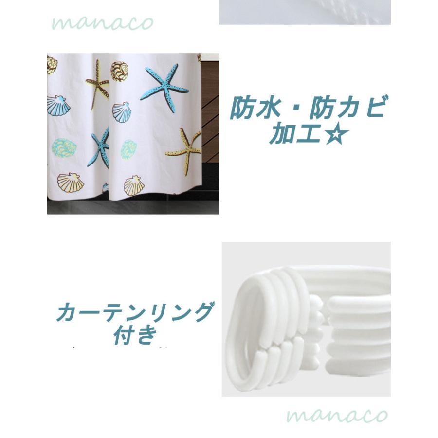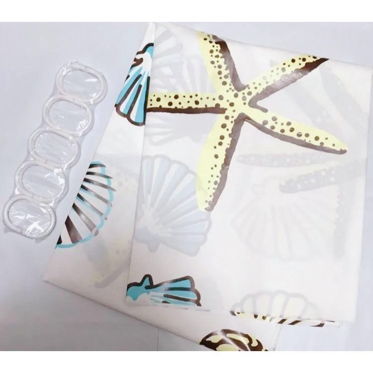 ●お風呂の模様替えにもぴったりなシャワーカーテンでヒトデや貝殻模様が可愛いお子様も喜ぶデザインバスカーテンです