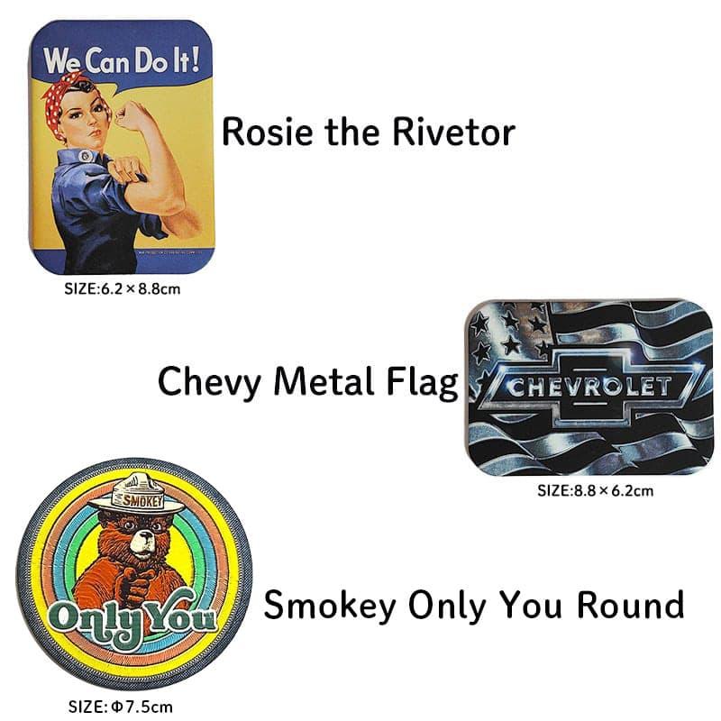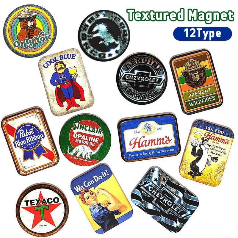 アメリカンデザインの有名銘柄のロゴやエンブレムがデザインされたレトロな雰囲気がおしゃれなマグネットです!