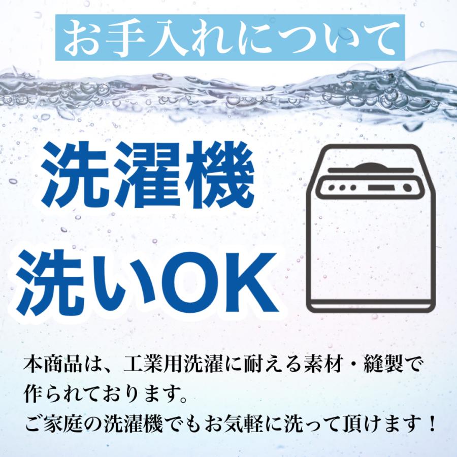 色落ちせず耐久性があるので、コストパフォーマンスも◎ 工業洗濯にも対応します。