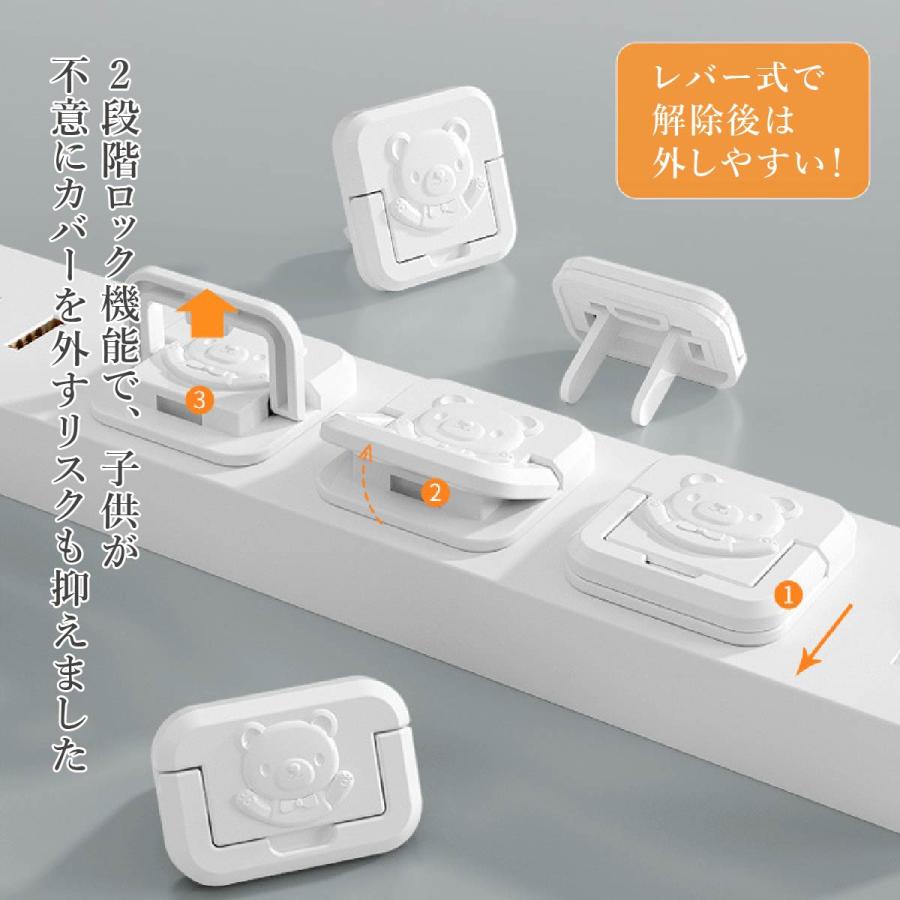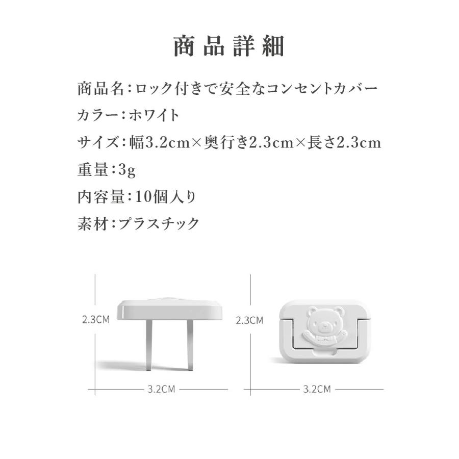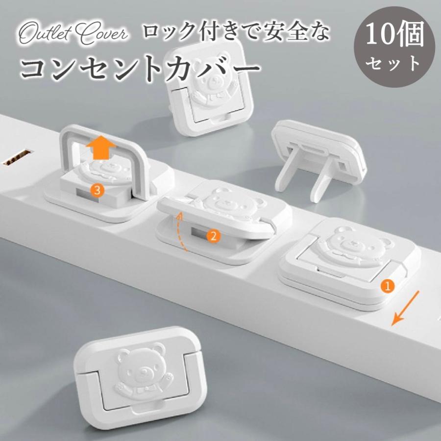 コンセントカバー 赤ちゃん 可愛い おしゃれ 防水 火事 感電 防止 不燃性 ほこり対策 ロック式 10個セット ホワイト かわいい コンセントホルダー 安全 事故 怪我 防止 百均 スライド 鍵付き 後付け 白 ATTO 送料無料