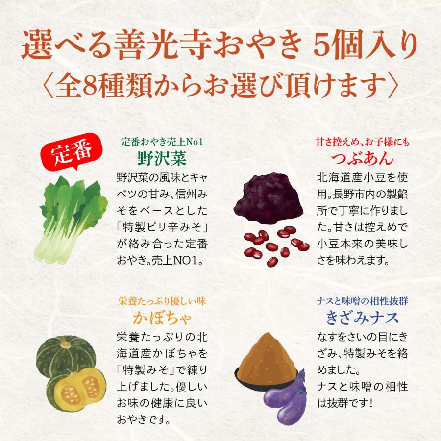 ※夏季休暇に伴い、8月7日(木)15時以降にご注文いただいた商品につきましては、8月18日(月)より順次出荷いたします。ご不便をおかけいたしますが、何卒ご了承ください。【農家直売どっとこむ厳選】善光寺御公許のおやき容量 100g 5個好評販売中!出荷可能時期:通年贈答体裁ならびに日付指定は、申し訳ございませんが承りかねます。