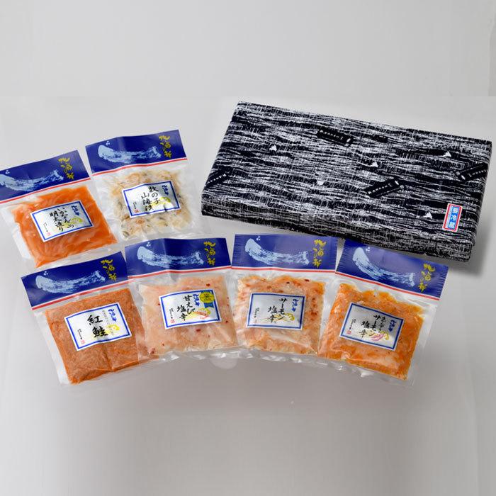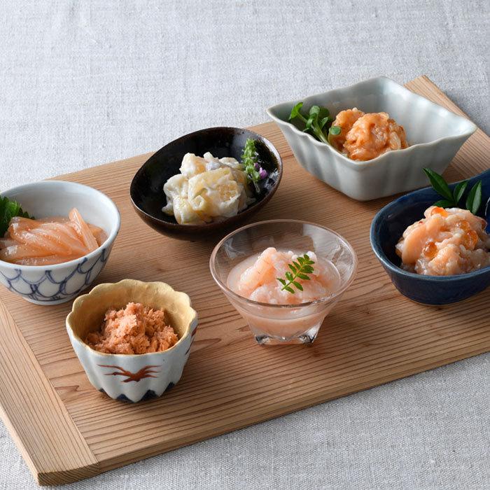 塩糀や酒粕、伝統の香辛料・かんずりなどを使った、新潟らしい珍味がずらり。塩糀で熟成させた「サーモン塩辛」は鮭ハラスのねっとり感とまろやかな塩気が絶妙。「数の子山海漬」は酒粕の風味にワサビの辛みがいい。酒もご飯も進む逸品揃いだ。