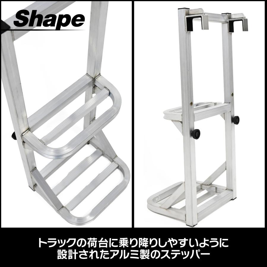トラックの荷台に乗り降りしやすいように設計されたアルミ製のステッパーです。