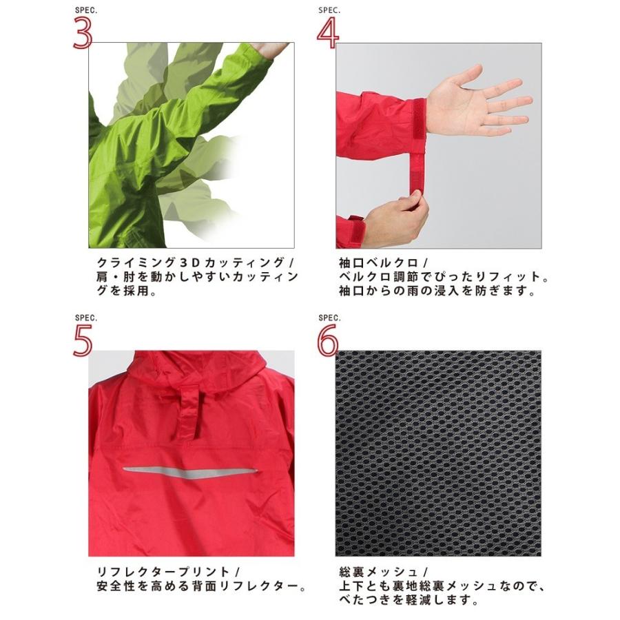 カラー マッシュルーム/レッド/ロイヤルブルー/ライム/ブラック サイズ S/M/L/LL/3L/4L 素材 表地:ポリエステル100%(PVCラミネート:耐水圧8,000mm) 裏地:ポリエステル100%(上下総裏メッシュ)