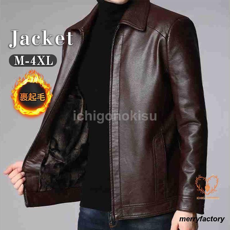 革ジャン メンズ レザージャケット レザーコート ライダースジャケット テーラード 裏起毛 革 開襟 紳士服 アメカジ アウター PUレザー