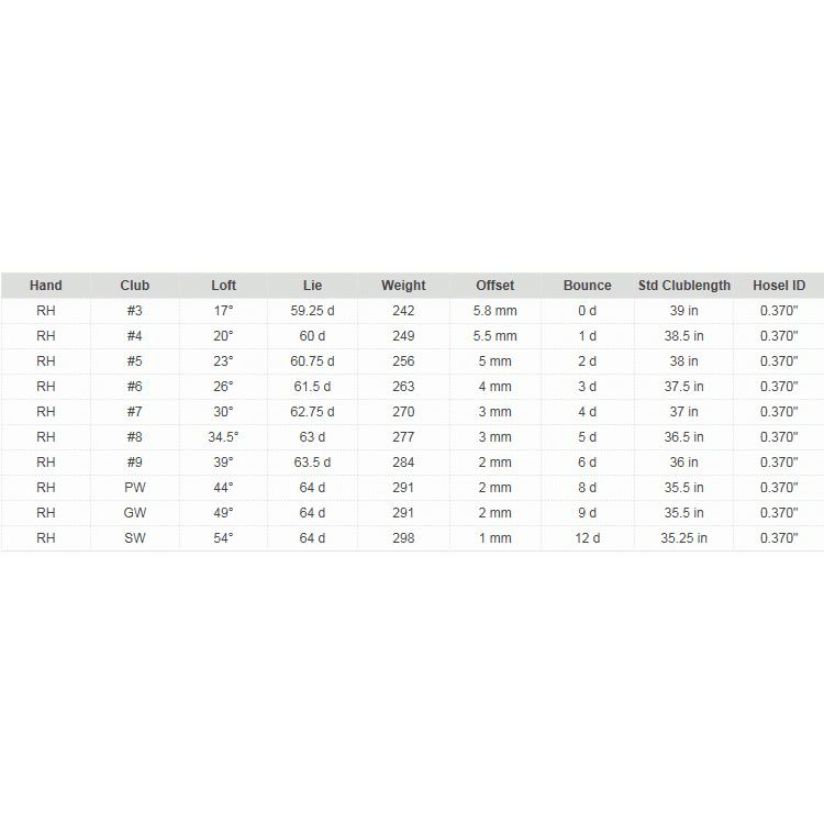 高反発仕様を特徴とする為、飛距離のパフォーマンスを向上させ、ショットが長く安定する事にも繋がります。薄く特別処理を施したステンレス鋼面のフェースはボールの速度が上がるだけではなく、バックスピンの重量配分も改善されます。実績の元に製造されたヘッド機能は、ゲームの最高のパフォーマンスを求める全てのゴルファーに推奨出来る商品です。Face:17-4 Stainless SteelBody:431 Stainless SteelHosel Bore:0.370"ルール適合