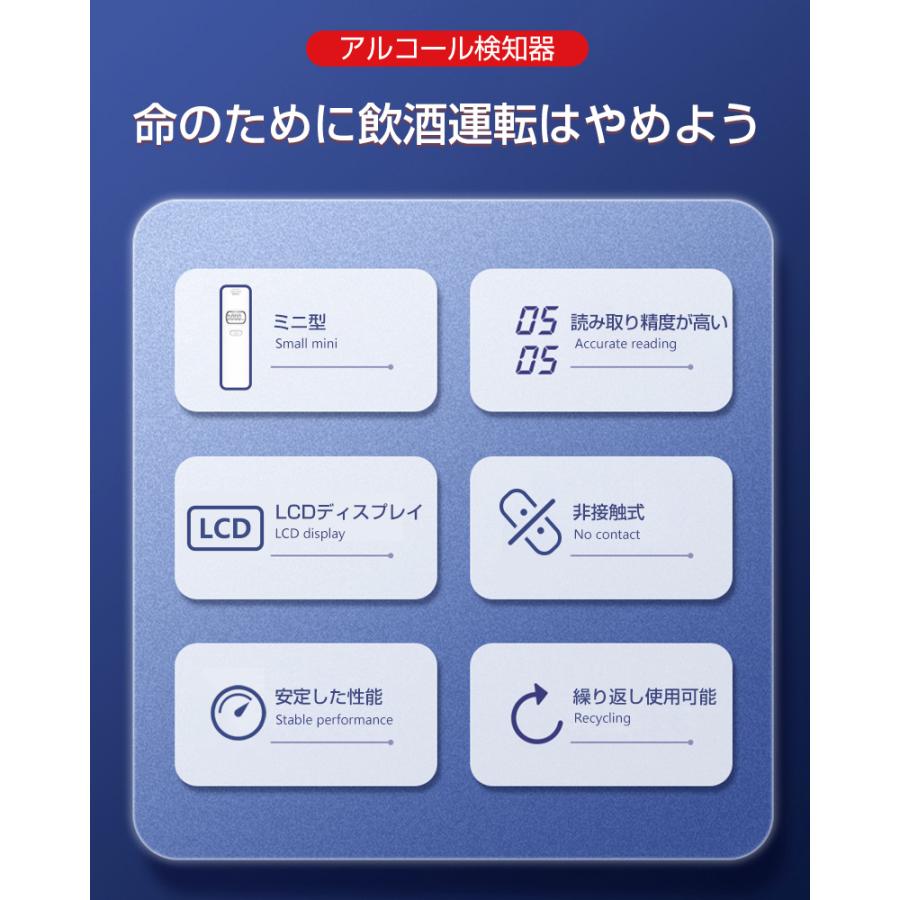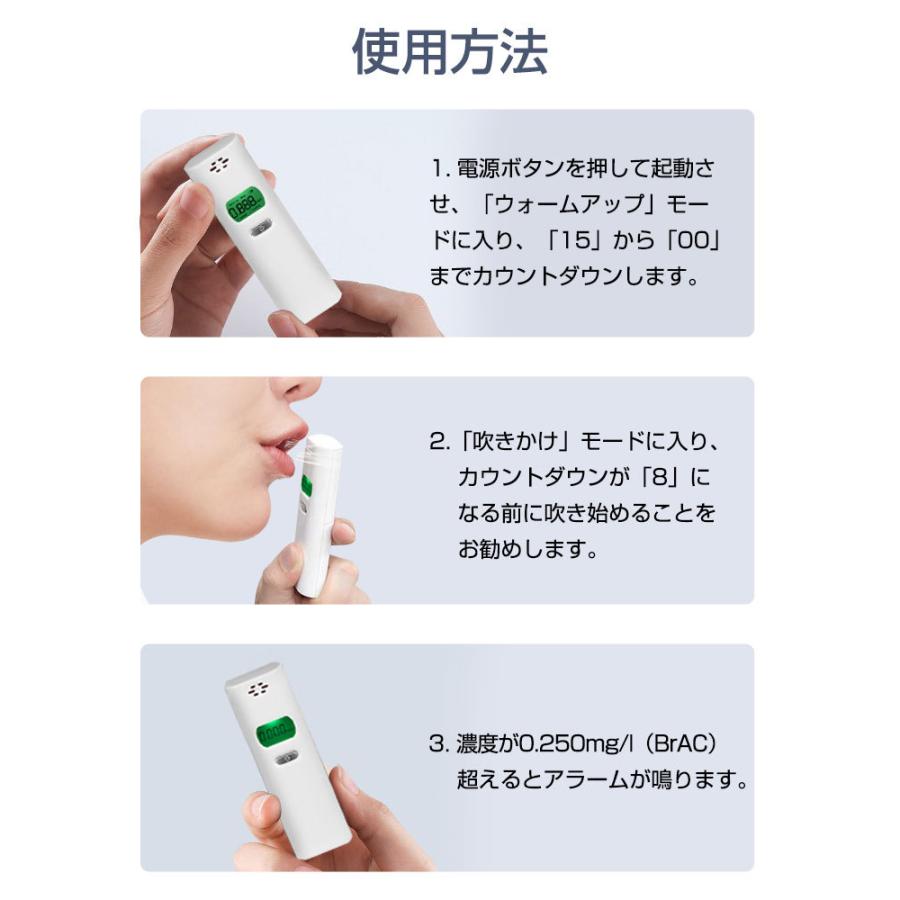 特徴:息を吹きかけるだけで呼気中のアルコール濃度を確認できる!