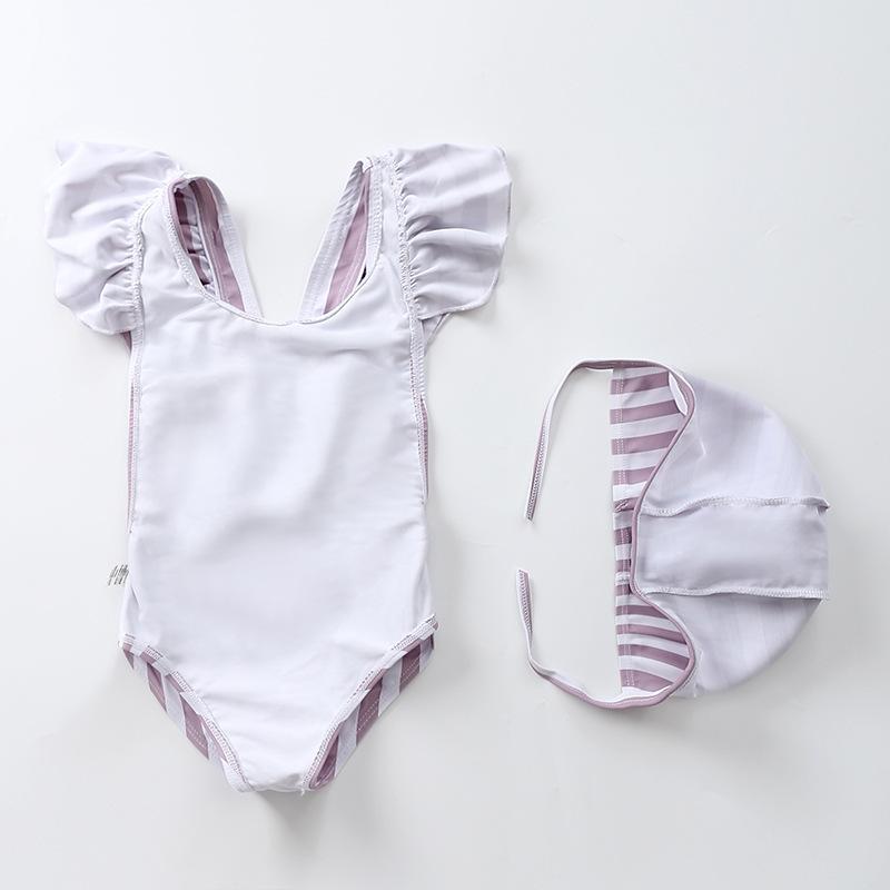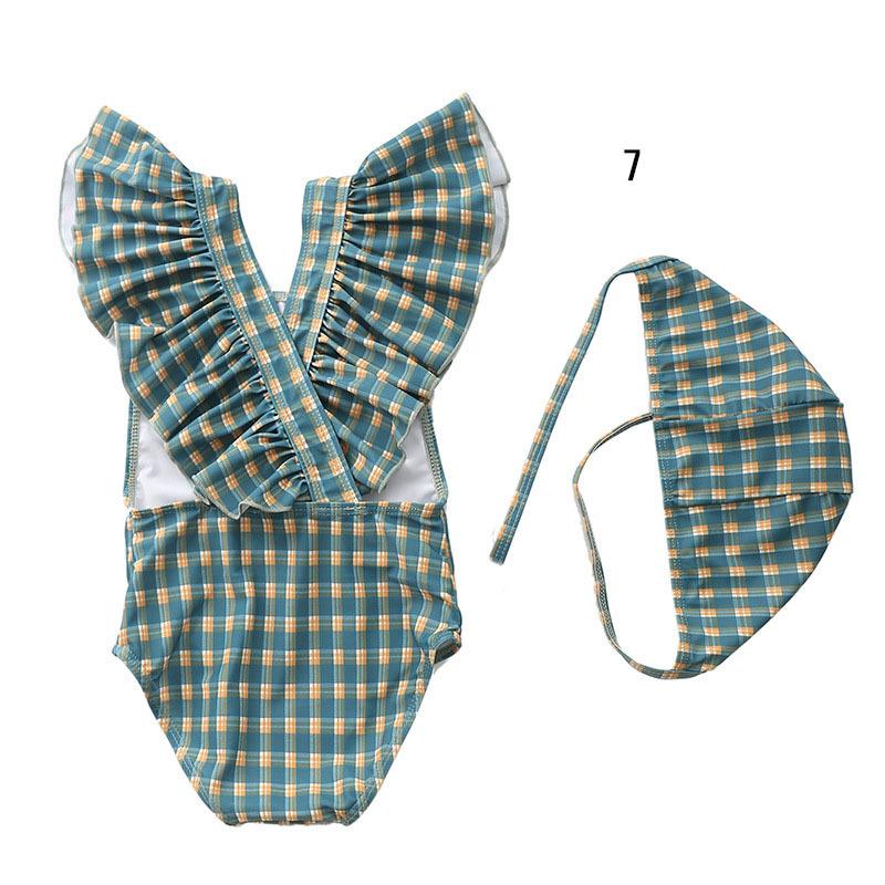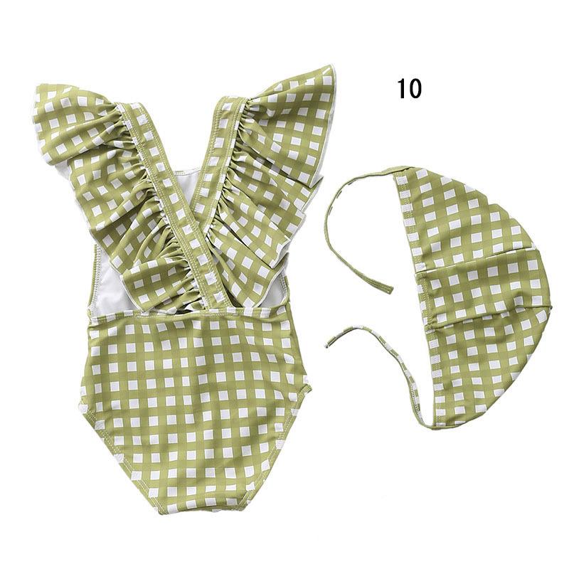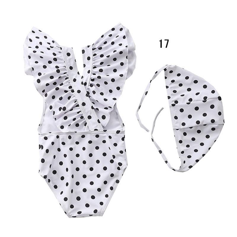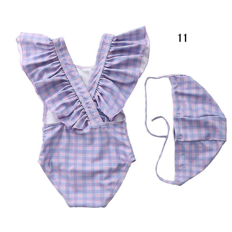 フリルが女の子らしくてキュートなレオタードタイプの水着です。バックスタイルも可愛いですよ◎