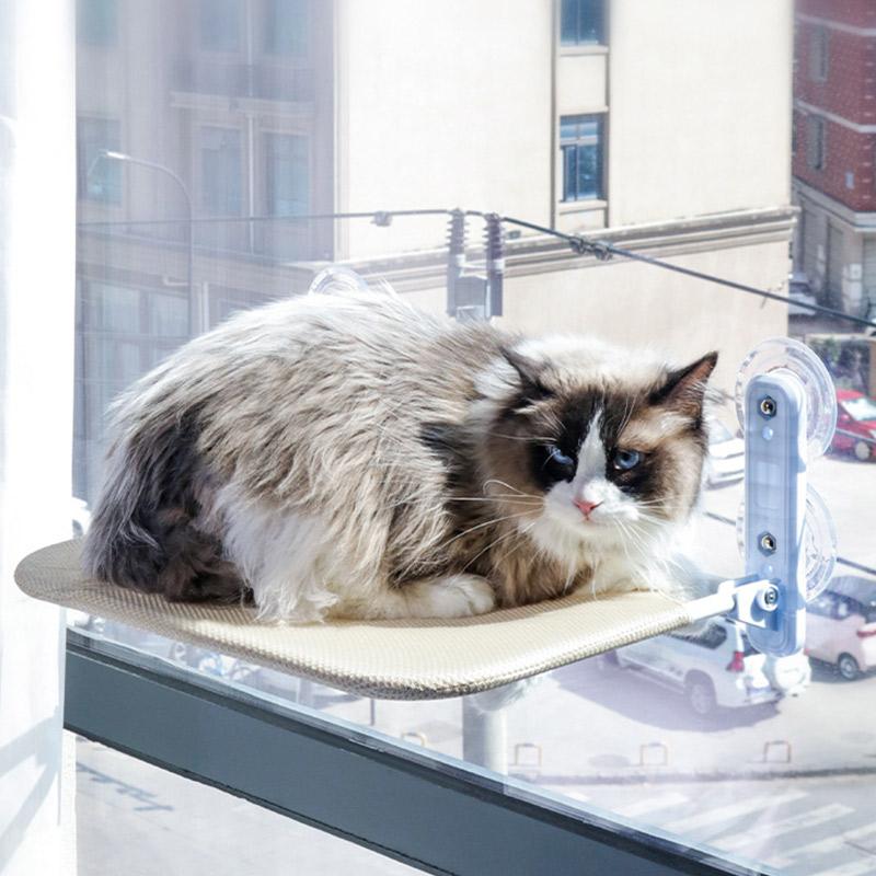猫ベッドとして窓ガラスに吸盤を取り付けるだけで利用できる猫専用ハンモック。猫タワーや普通の猫ベッドより断然場所をとらず、室内のスペースを節約できる、猫ウィンドウベッドです。折りたたむことができるので、カーテンの使用にも影響しません。取り外しやすいマジック取り付け簡単です!
