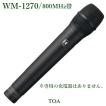 【特長】●特定小電力無線局ラジオマイク(800MHz帯)の規格に適合したボーカル用ハンド型ワイヤレスマイクです。●PLLシンセサイザー方式の採用により、B型に割り当てられた30波の中の任意の1波をスイッチで選択し、送信することができます。●送信出力は2mW(L)/6mW(H)の切換が可能で、多チャンネル同時使用から長い到達距離が必要な場合まで、幅広い使用条件に対応しています。●また、音質の優れたダイナミック型マイクユニットの採用により、クリアーで力強い音質を実現しています。●最大入力音圧はPADスイッチにより130〜142dB SPLの範囲で設定でき、幅広い入力音圧への対応が可能です。●また、抗菌処理していますので安心してお使い頂けます。 【仕様】 メーカー TOA 型番 WM-1270 商品名 ワイヤレスマイク ハンド型 メーカー希望小売価格(税込) 68250円 電波型式 F3E 送信周波数 806.125~809.750 MHz(30波のうち1波) トーン信号 3波切換式 発振方式 水晶制御PLLシンセサイザー方式 定格空中線電力 2 mW(L)/6 mW(H) 到達距離 条件の良い屋外にて約60 m :2 mW(L)* 条件の良い屋外にて約100 m:6 mW(H)* 変調感度 ±4.8 kHz(1 kHz 94 dB SPL入力時) 最大入力音圧 142 dB SPL(PAD -12 dB.±38 kHz偏移時) 入力等価雑音 34 dB SPL以下(Aカーブ使用) 使用マイクロホン 単一指向性ダイナミック型 周波数特性 80 Hz~15 kHz プリエンファシス 50 μs アンテナ 内蔵型 使用電池 単3形乾電池R6PU(1個) 電池持続時間 約14時間(2 mW時)/約10時間(6 mW時) (マンガン電池(黒)R6PU常温・連続使用にて) 使用温度範囲 0 ℃~+40 ℃ 仕上 ボディー:アルミ ダークグレー(マンセルN2.0近似色) 塗装 ヘッド:金属メッシュ(鉄) ダークグレー(マンセルN2.0近似色) 塗装 質量 335 g(電池含む) 付属品 マイクホルダー(φ30~φ35.NS5/8→U5/16変換アダプター付)…1. 単3形乾電池(R6PU)…1.設定用ドライバー(本体内蔵)…1. カラーマーク(6色)…1.チャンネルシール…1.収納ケース…1.転がり止め…1 【サイズ区分】 ● 通常…ヤマト運輸でのお届けとなります。 サイズ区分について