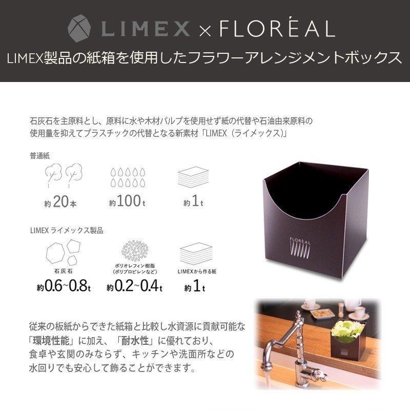【LIMEX製ボックス】・・・ LIMEX製品の紙箱の特徴は、従来の板紙からできた紙箱と比較し水資源に貢献可能な「環境性能」に加え、「耐水性」に優れております。