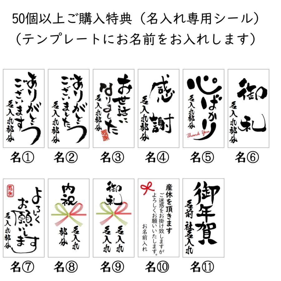 50個以上ご購入でお名前入れや会社名、オリジナルメッセージをお入れいたします。