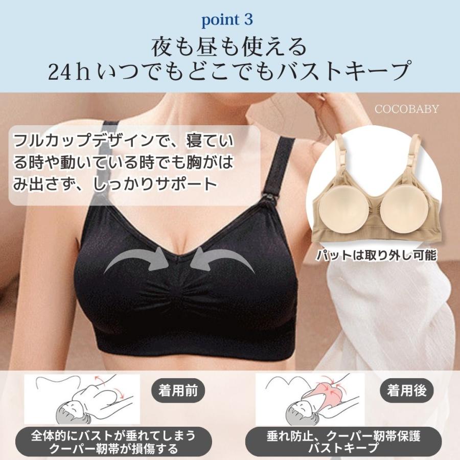 ・寝ている間もしっかりフィットし、胸がはみ出すこともない、母乳漏れを防止。