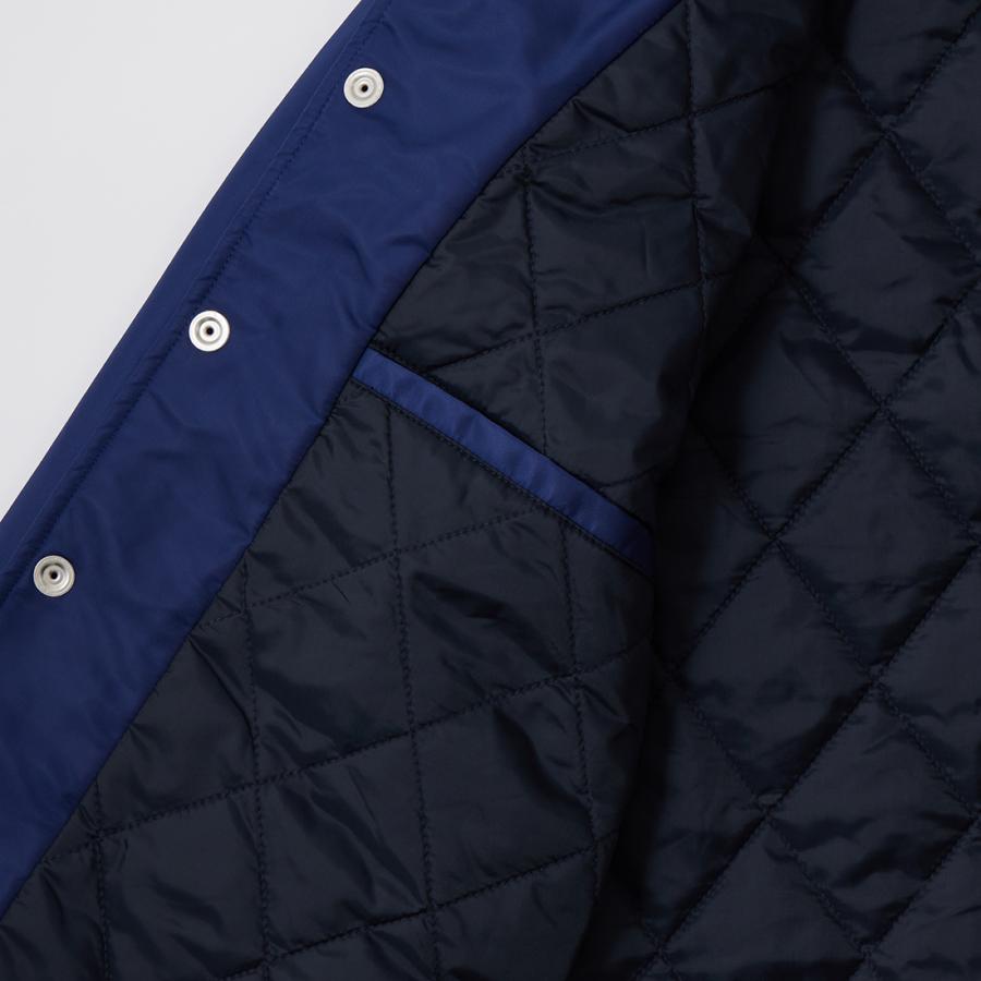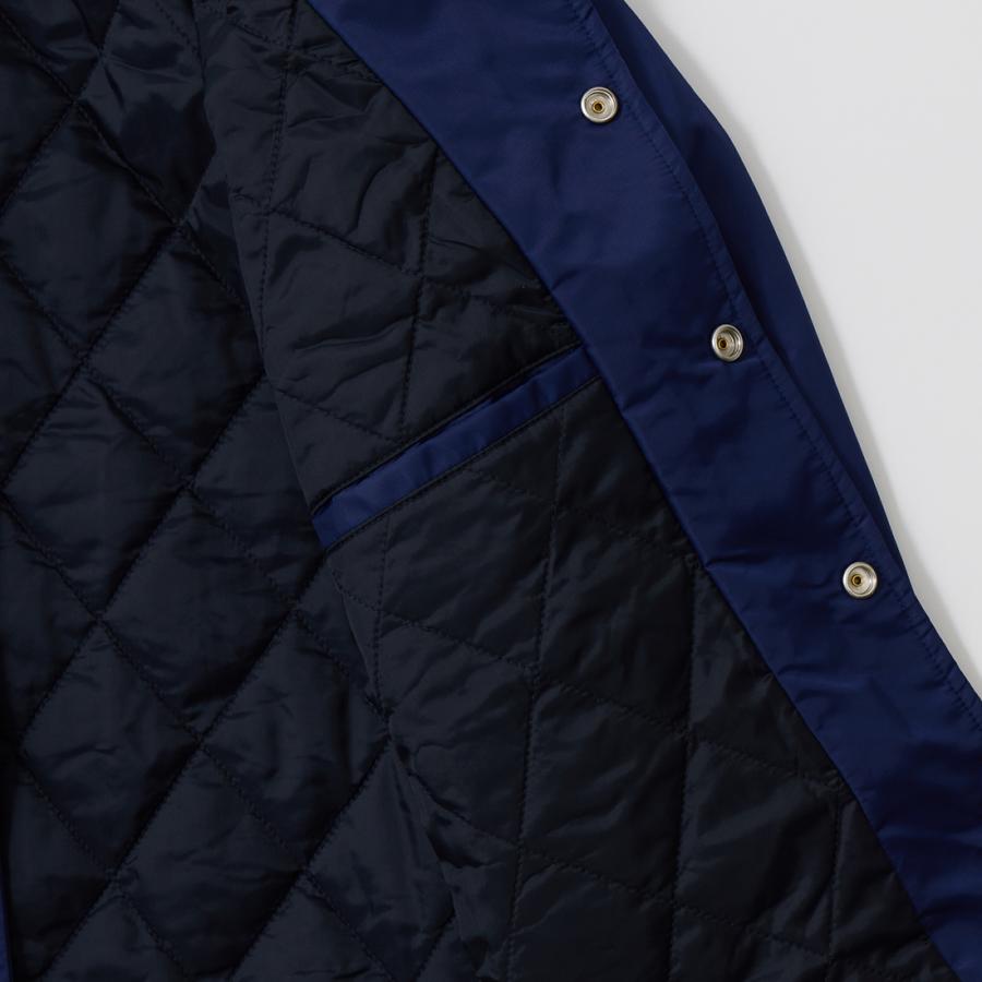FELCO(フェルコ)のCLASSIC FIT OXFORD NYLON SATIN JACKET w/QUILT THISULATE LINING。フェイスにナイロンを使用したスナップフロントのコーチジャケット。アメリカンな雰囲気の大きめの襟。ポケットはフロントに2つと、内ポケットが2つ。袖口はスナップでサイズ調整が可能なゴム仕様。内側はシンサレートのキルトライニングとなっており保温性も高い1着。フィットは全体的にゆとりを持たせたクラシックフィット。ストレスのない着用感で重ね着もし易いコーチジャケットに仕上がっています。