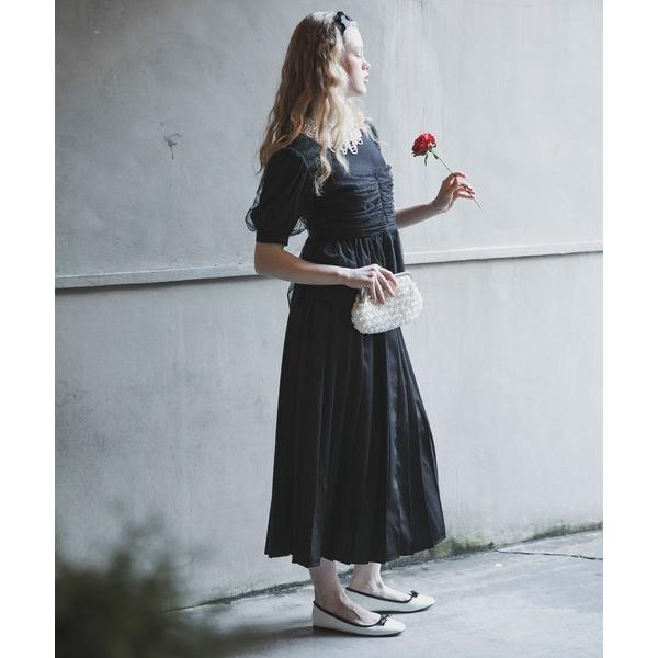 商品名:【BONLECILL noir】ドットチュールペプラムブラウス&ロングプリーツスカート セットアップドレス