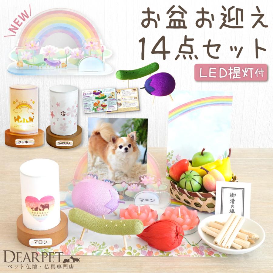「おかえり提灯」とパステルちりめん精霊馬のお盆セットを一緒にしてお届けします。