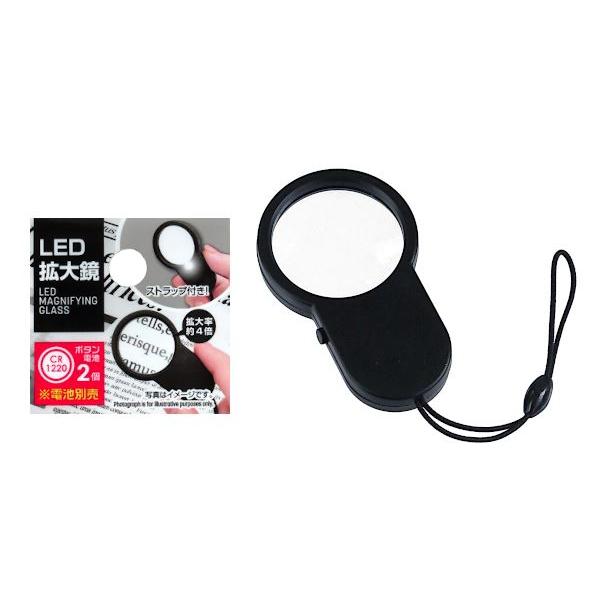 LED拡大鏡 拡大率4倍 3.7×6.2cm ストラップ付 [色指定不可] (100円ショップ 100円均一 100均一 100均)