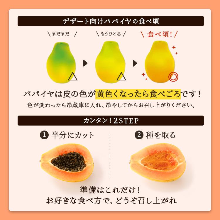 レッドパパイヤは独特の風味が弱く、甘さが引き立って感じるため、パパイヤが苦手な方も食べやすい食味となります。