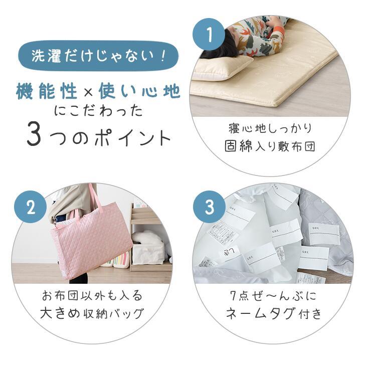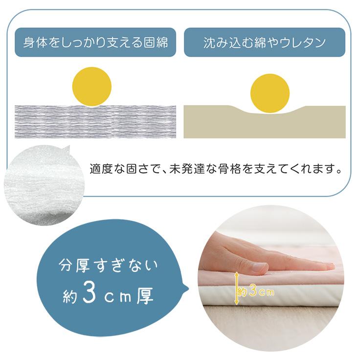 敷布団:側生地:ポリエステル100%、中材:ポリエステル100%固綿(460g)