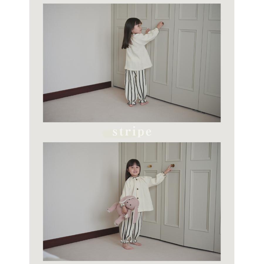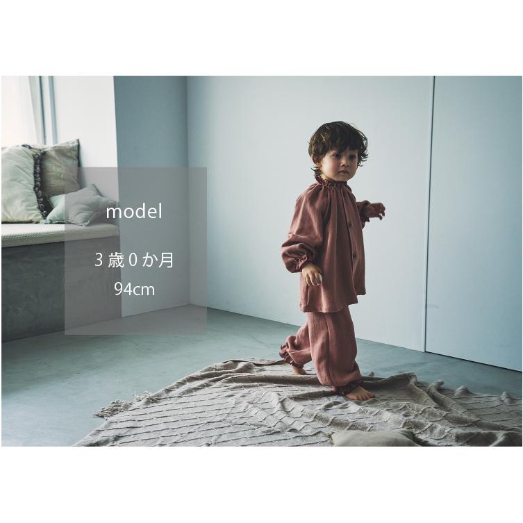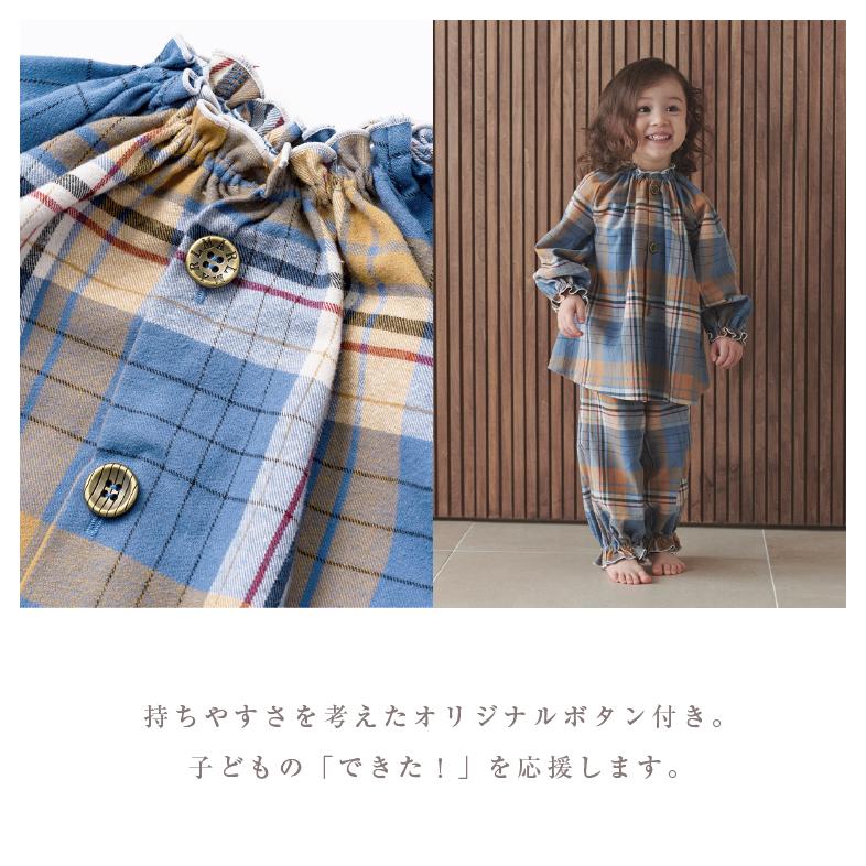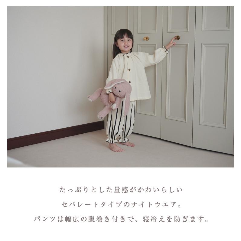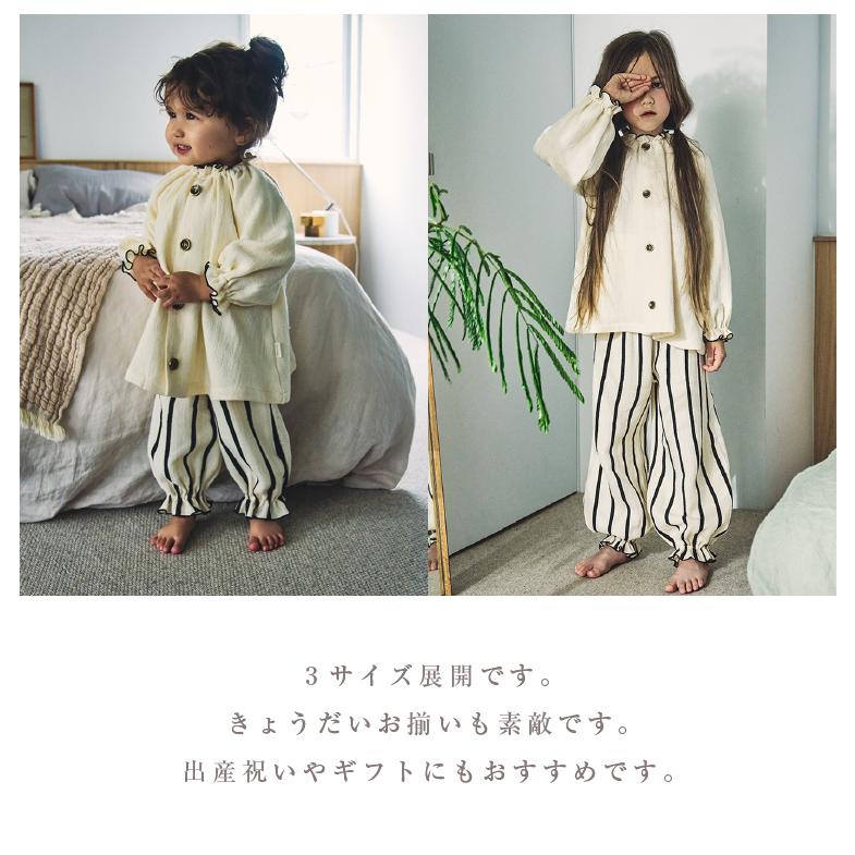 パンツは幅広の腹巻き付きで、寝冷えを防ぎます。袖口足口にはゴムが入っているため、成長に合わせた丈の調整も可能。